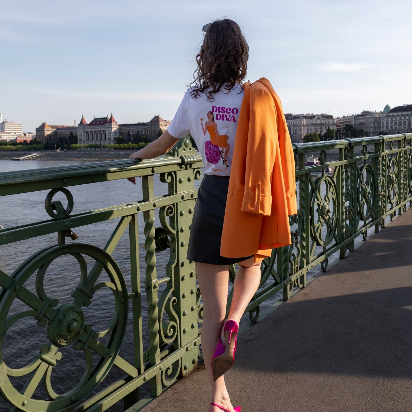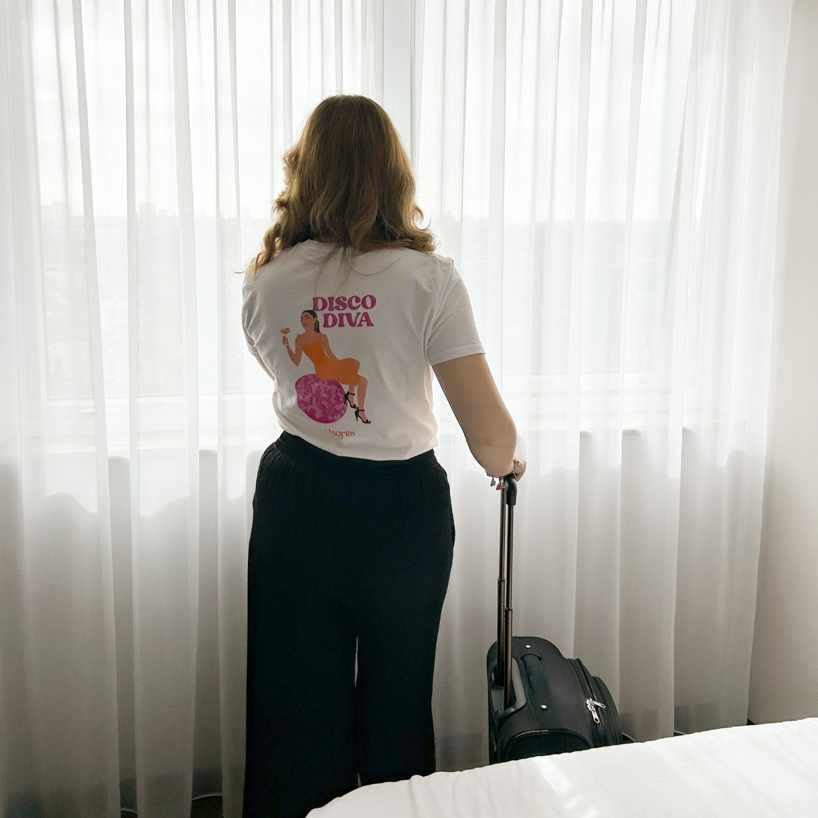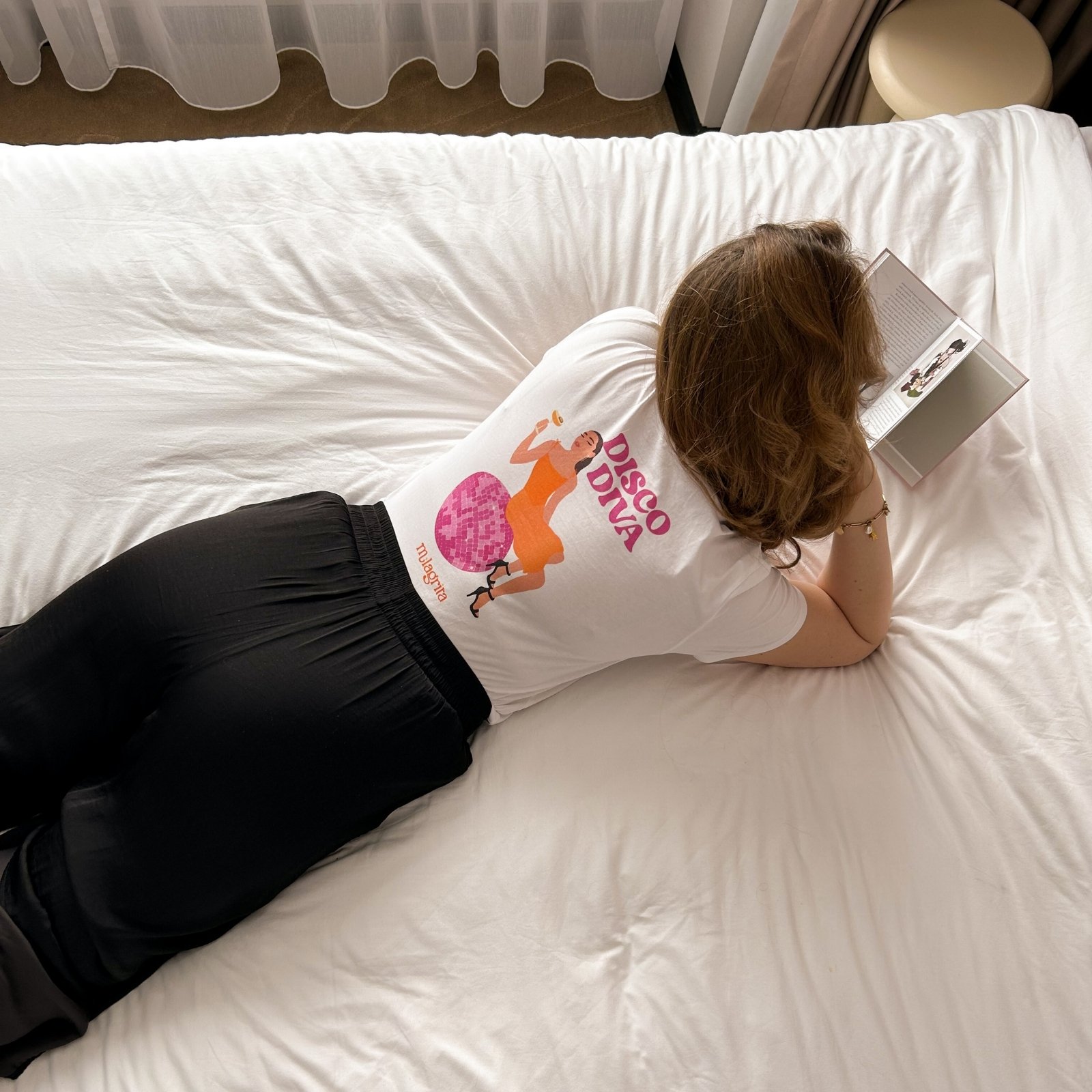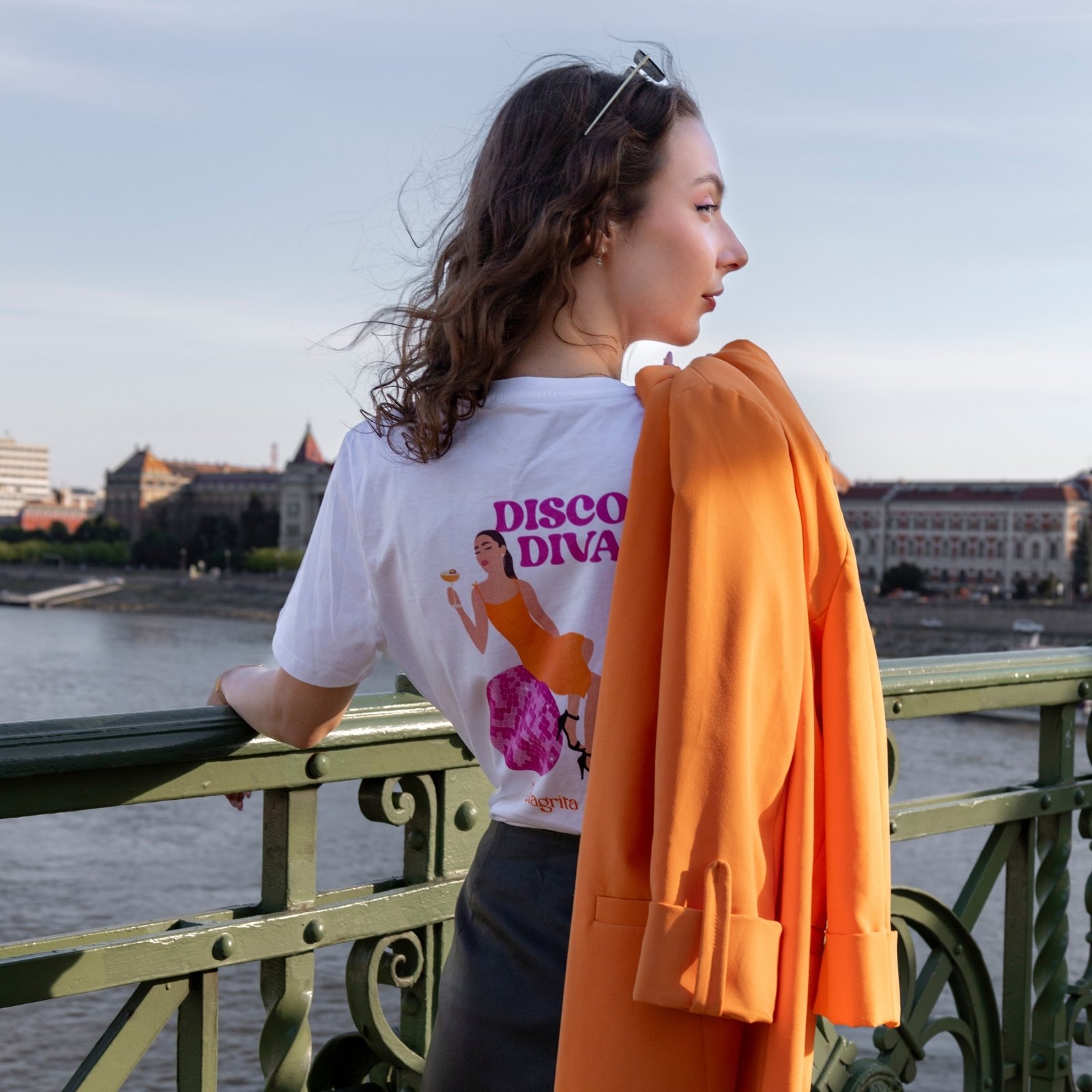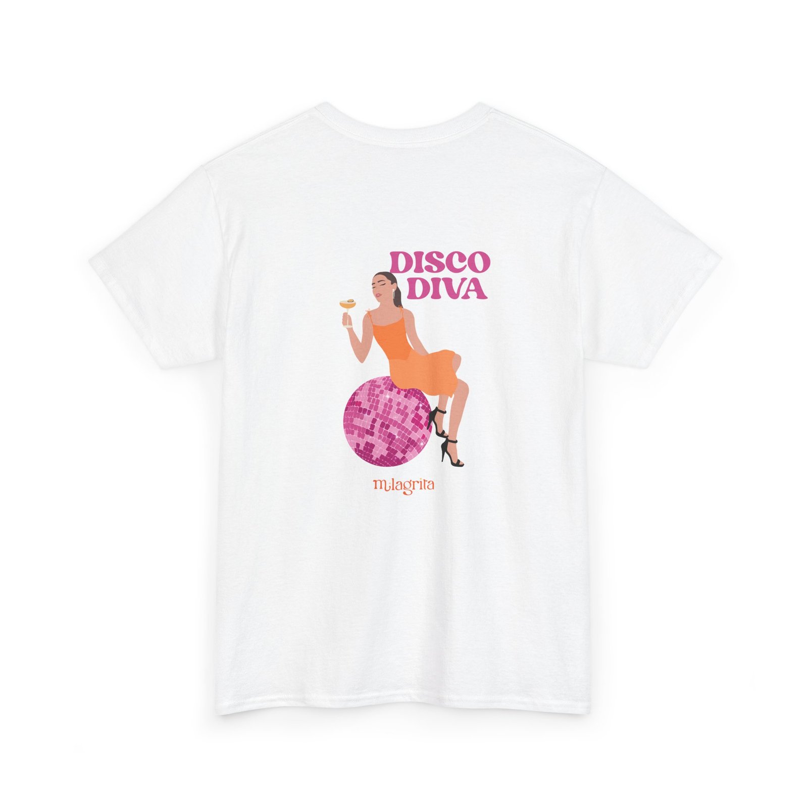 Shine bright and steal the spotlight with our Disco Diva cotton t-shirt! Featuring a glamorous illustration of a confident queen sipping a cocktail while lounging on a dazzling pink disco ball, this design is all about celebrating your bold, sassy, and effortlessly fabulous self. Whether you’re dancing the night away, making power moves, or simply living your best life, this tee is your go-to for radiating confidence and fun.
