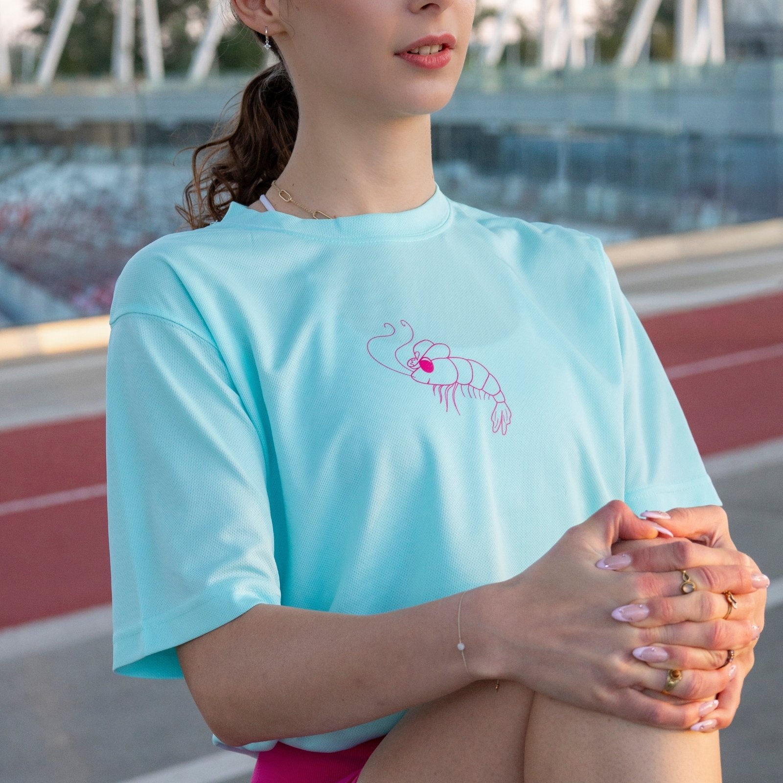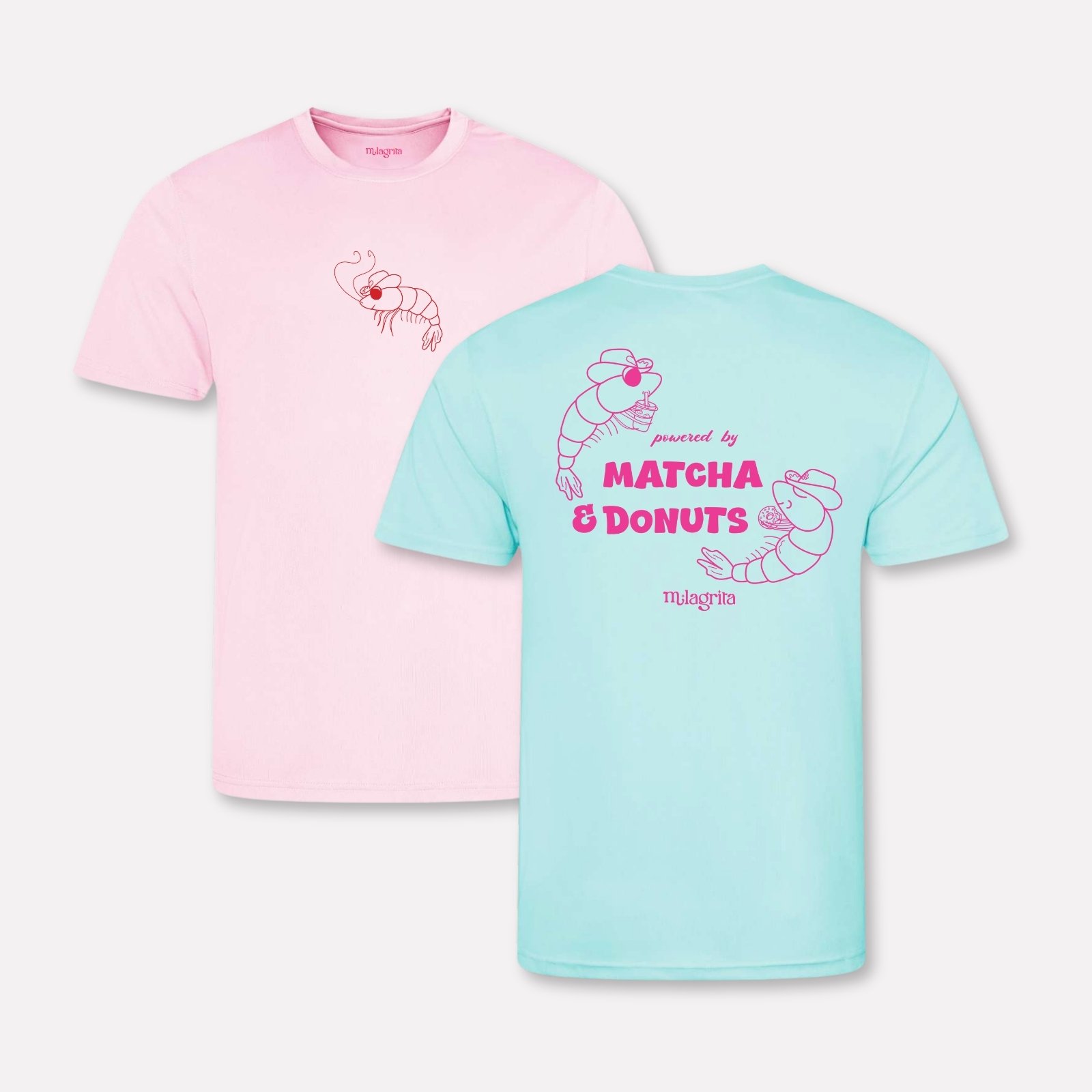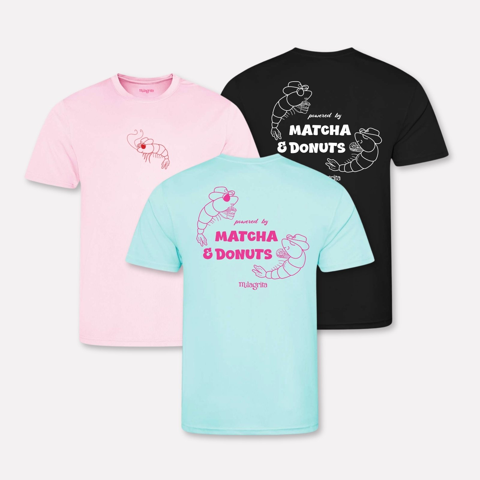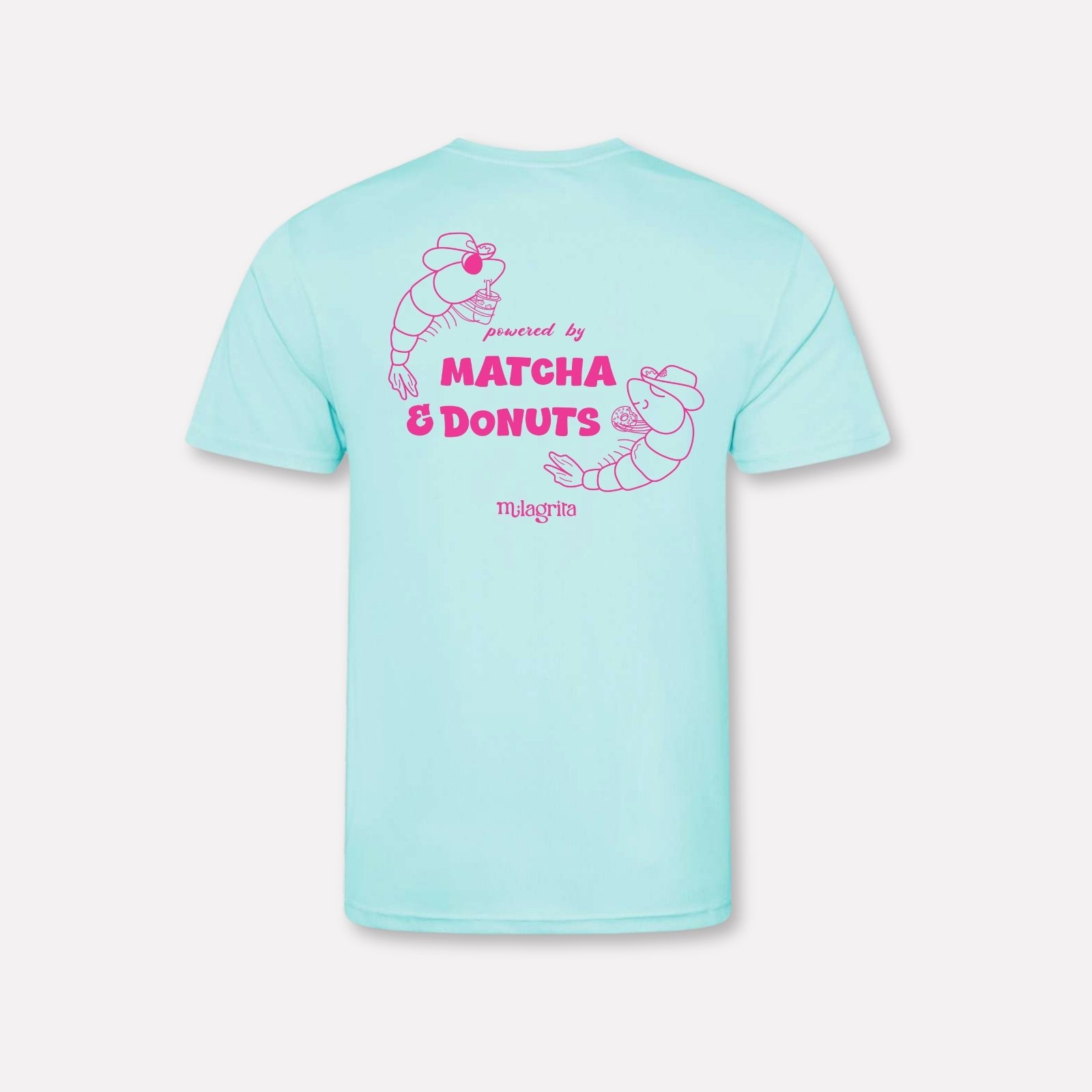 Unique design from Milagrita: Powered by Matcha & Donuts – Sport T-shirt with Cowboy Shrimps