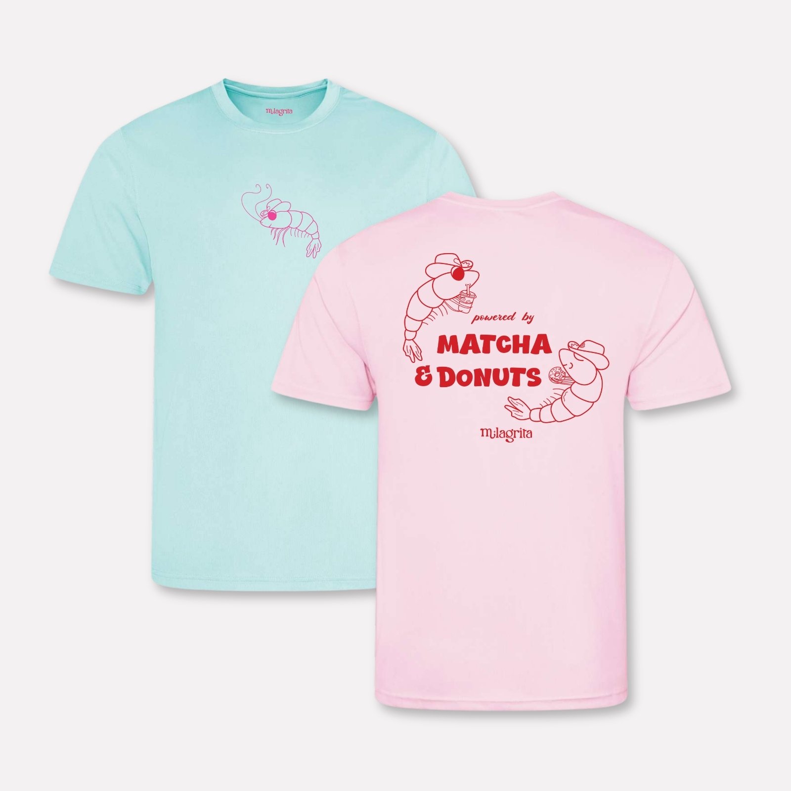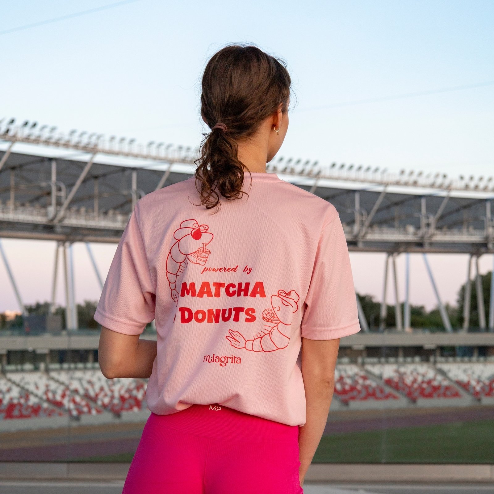 Powered by Matcha & Donuts – Pink Sport T-shirtPowered by Matcha & Donuts – Pink Sport T-shirt